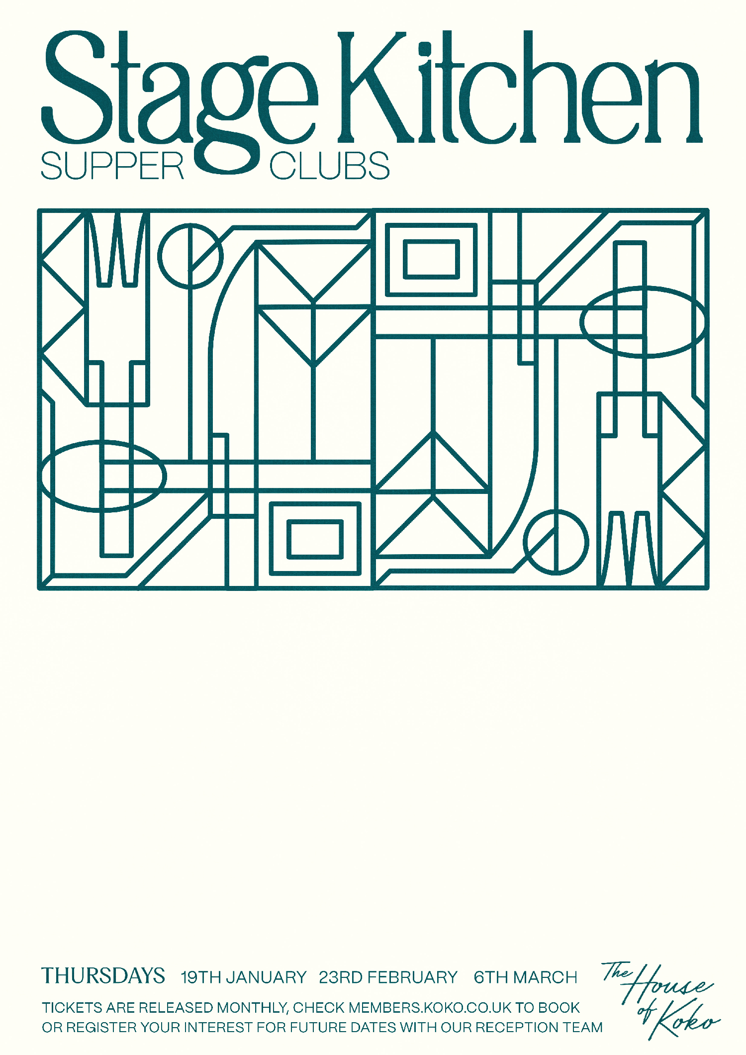 Art direction and poster design for the legendary (and newly reborn) London institution Koko; both the downstairs cafe and it’s award-winning members club upstairs, House of Koko. 2022-3